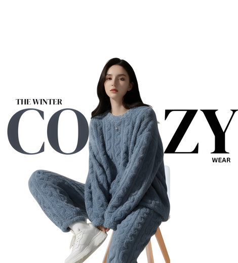 Women's Baggy Cozy Fleece Pajama Set - O-Neck Long Sleeve Winter Loungewear (2-Piece)